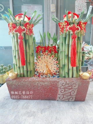 開運竹盆栽,會因供貨及氣候狀況影響芽葉長或短.實際以出貨為準.另外圖片中之花盆(器)、配飾用品,遇缺貨時,將以適當的容器、配飾用品替代使用。依季節的變化.天然植物呈現要以實際出貨為主! !商品照片為栽種一段時間所拍攝,葉片較為茂盛! !此商品花盆會以當季款式隨機出貨 ! ! 圖片中之花盆(器)、籃子或配飾用品,遇缺貨時,將以適當的容器、配飾用品替代使用。