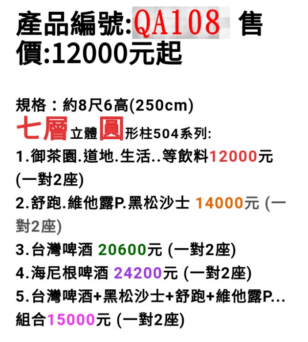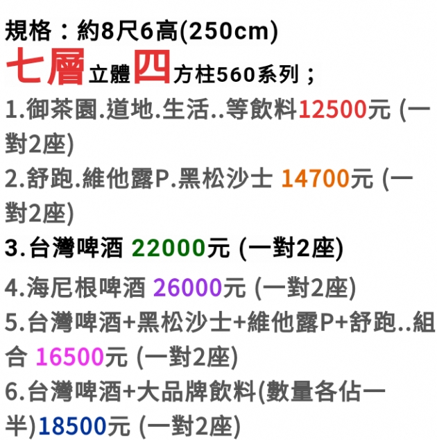 6.台灣啤酒+大品牌飲料(數量各佔一半)18500元 (一對2座)