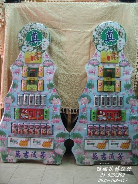 台中南區花店喪禮飲料塔_追思罐頭塔台中西屯區花店殯儀館罐頭山製作
