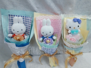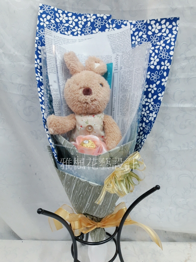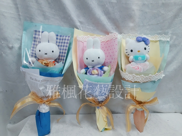 玩偶與包裝紙,緞帶..等飾品,常會因季節性暫時短缺的問題,所以圖片中的商品,會因為貨源消長而有所變動,若是因為該玩偶與包裝紙,緞帶..等飾品短缺,將以同等值或升等商品代替。
