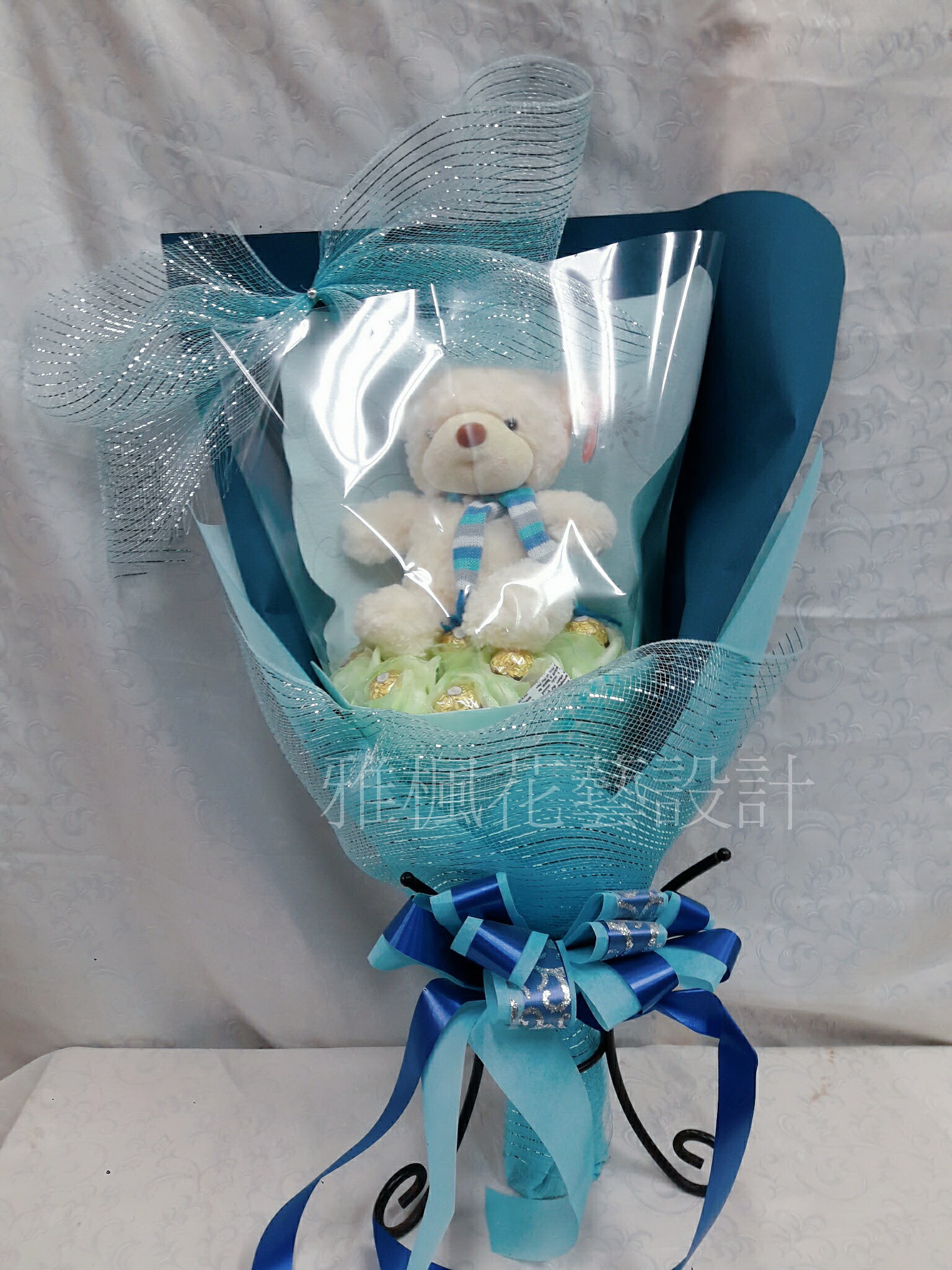 玩偶與包裝紙,緞帶..等飾品,常會因季節性暫時短缺的問題,所以圖片中的商品,會因為貨源消長而有所變動,若是因為該玩偶與包裝紙,緞帶..等飾品短缺,將以同等值或升等商品代替。