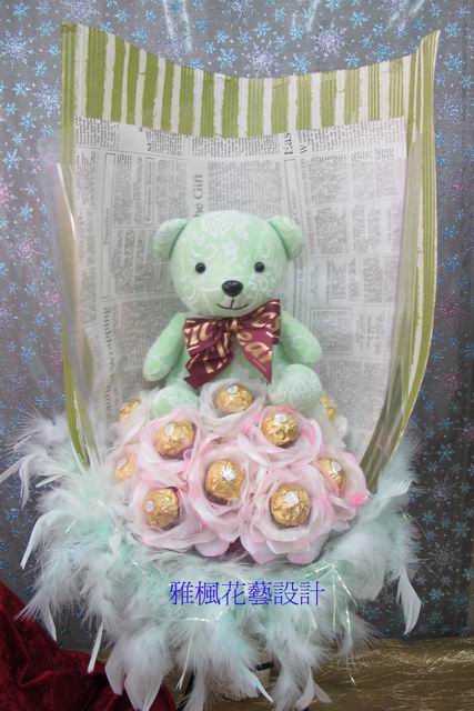 蕾絲熊金莎花束金莎花束_二崙花店(專車滿2500外送.宅配無金額限制) |