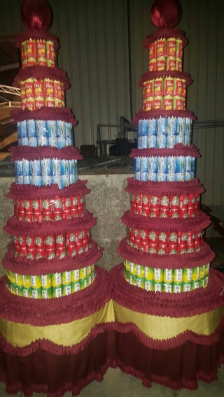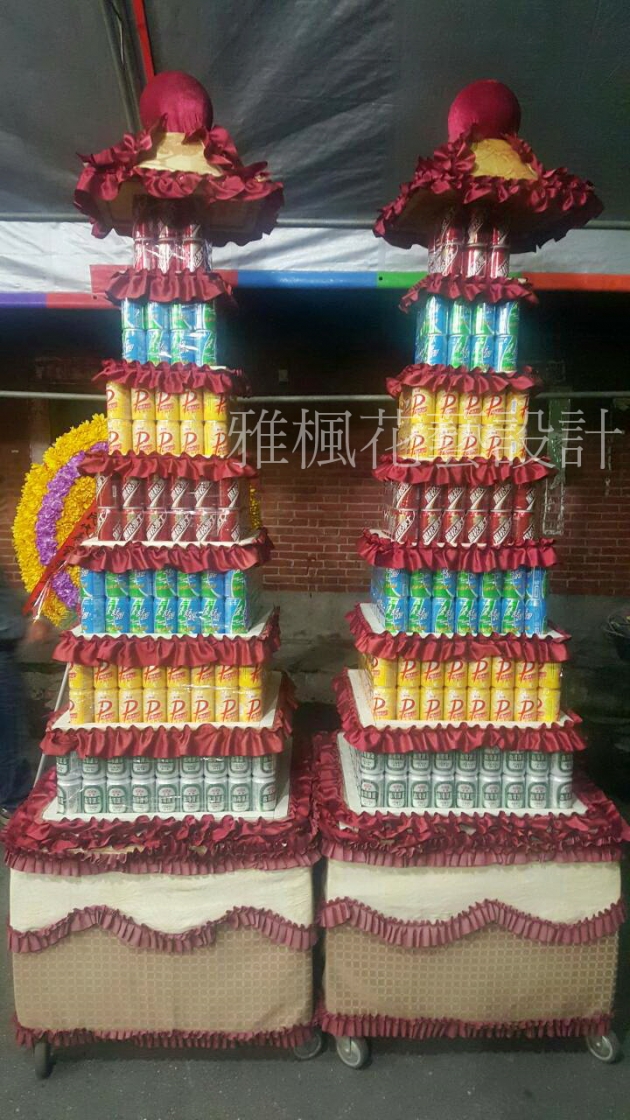 十三層罐頭山(塔)飲料.啤酒...等,都可組裝 一對(2座)25000元起 南投_雲林花店_彰化罐頭塔罐頭疊外送秀水鄉第十八公墓殯儀館