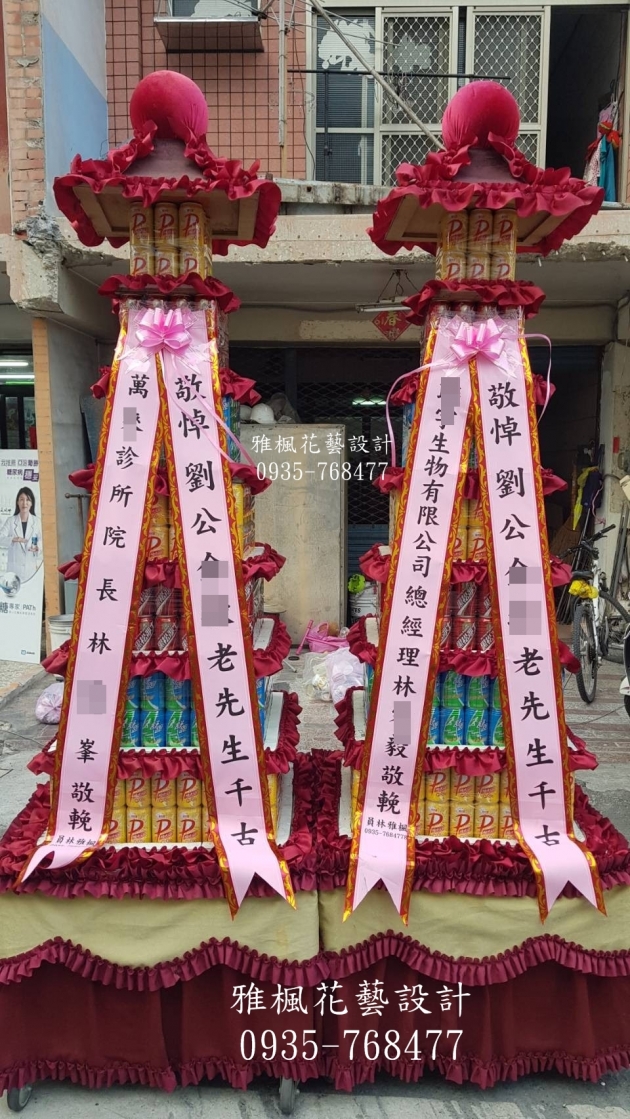 九層罐頭塔弔慰喪禮_235系列追思罐頭塔鹿港鎮花店_福興花店送飲料塔到喪家
