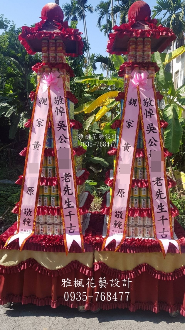 九層罐頭(塔)籃_雅楓花藝0920768477南投彰化雲林花店專車送達殯儀館喪禮飲料塔
