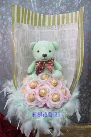 蕾絲熊金莎花束金莎花束_二崙花店(專車滿2500外送.宅配無金額限制)