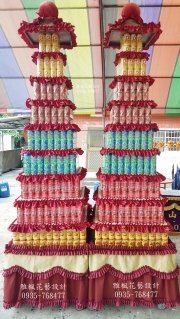 七層立體四方(圓形)型罐頭山_飲料.啤酒...等,都可組裝 一對(2座)12000元起,員林市花店0935-768477二水花店外送