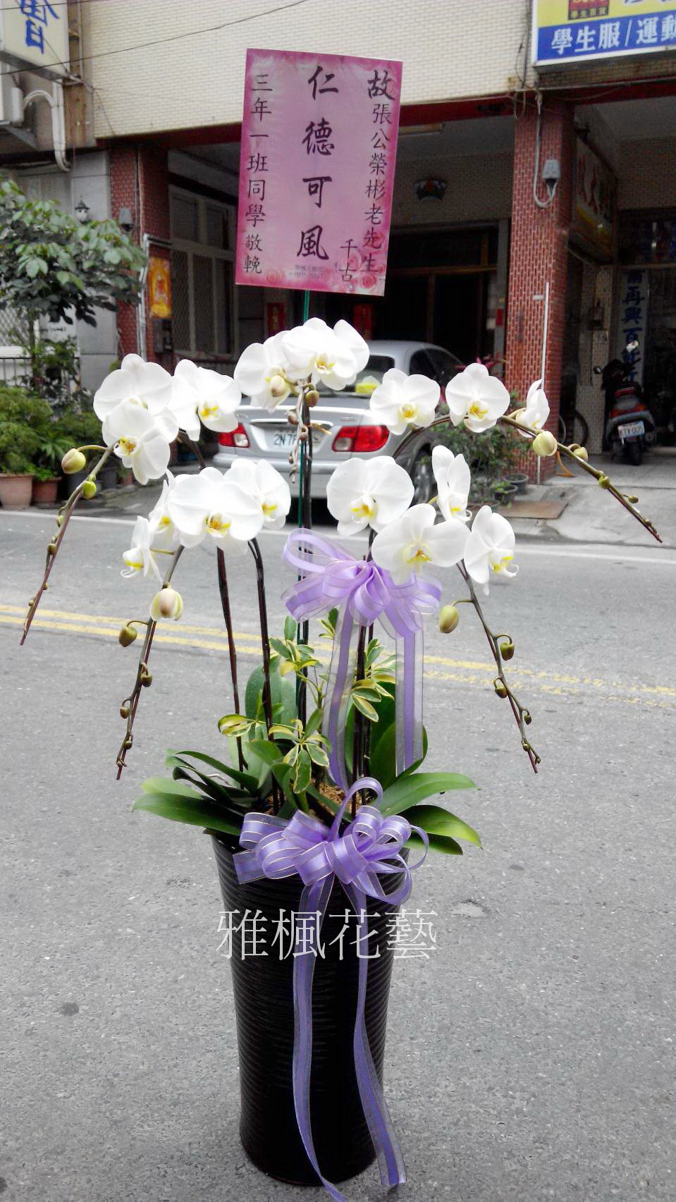 高雅蝴蝶蘭盆栽(適用於喪事禮儀.弔慰)同時間,地點,一次送(二盆)一對,(可不同公司,人名,頭銜)本月特價二盆5500元