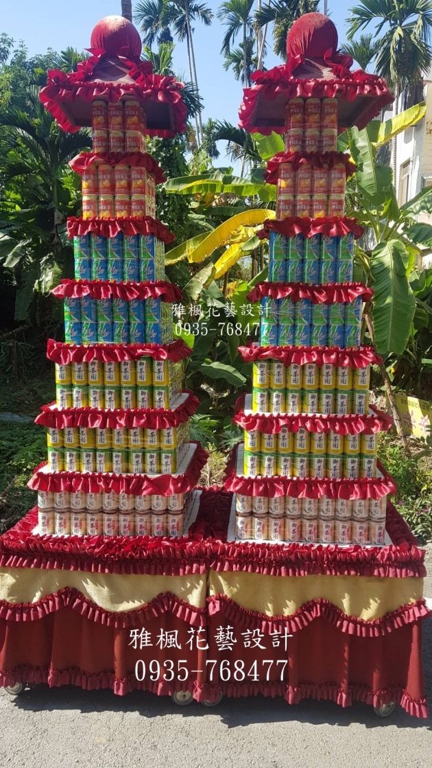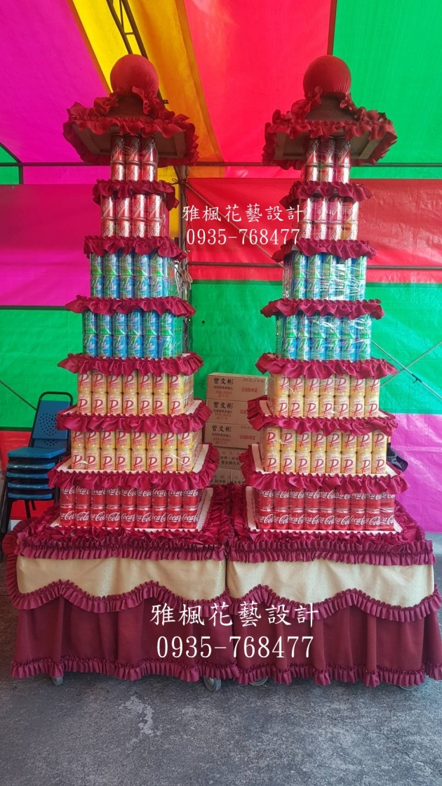 十三層罐頭山(塔)飲料.啤酒...等,都可組裝 一對(2座)25000元起 南投_雲林花店_彰化罐頭塔罐頭疊外送秀水鄉第十八公墓殯儀館