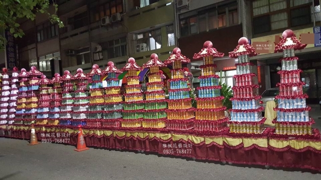 九層圓形立體罐頭山(塔)飲料系列御茶園.道地.生活..等飲料14000元起 ( 一對2座 )罐頭山外送彰化市立殯儀館,彰化縣和美鎮罐頭塔,彰化縣鹿港鎮罐頭塔