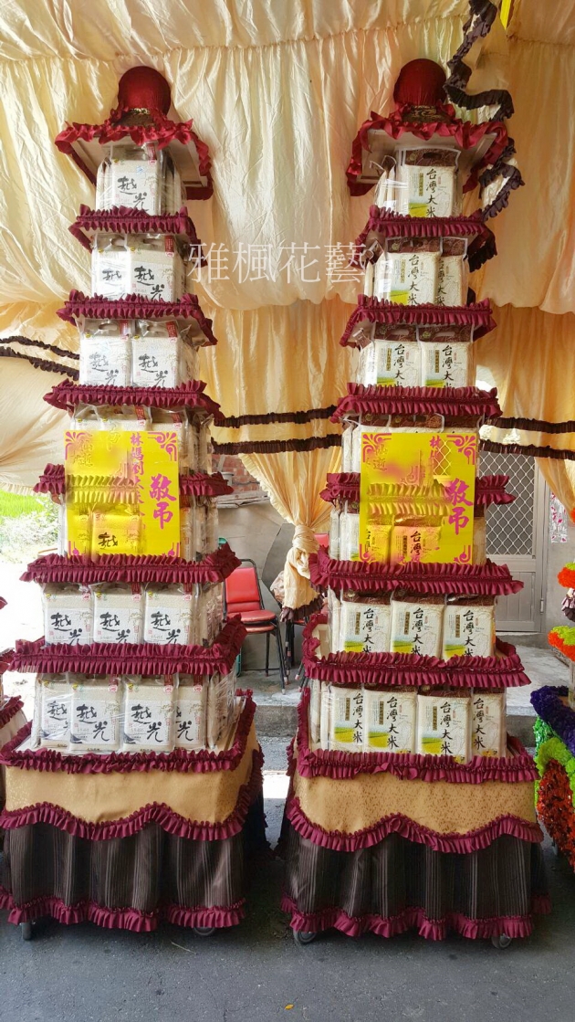 七層立體四面平安米_月光米_馥米_台灣大米罐頭山彰化市喪禮罐頭塔罐頭籃外送花壇鄉簡易殯儀館_大村花店